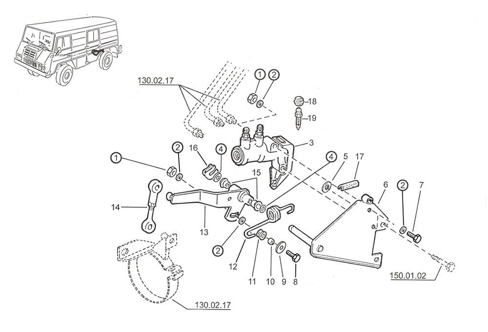 Brake pipes front axle C, D, E, F, P
